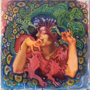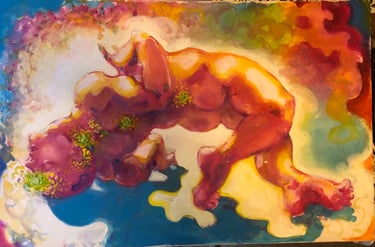 Here are two works in the same series, both acrylic on canvas. They explore some somatic experiences of mine.