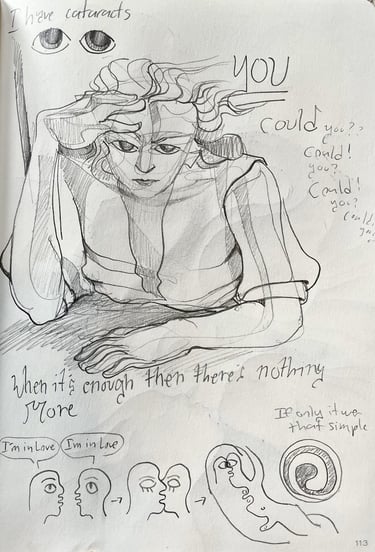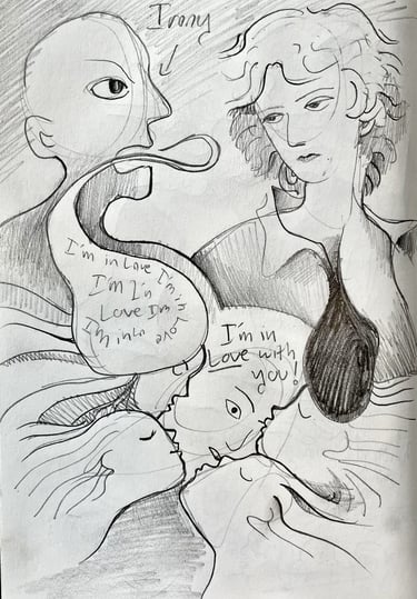 these are four sketches that I did when I was trying to explore the concept of lavanic irony to write this. I was, and still am unsatisfied with the explanation I gave. I worry it may give the wrong impression. Like lavanic beauty, the only way to understand Irony is to experience it for oneself. It is the inherent frustration of being alive, but at the same time it can be so much more than that, and other artists have done a much better job than I have at capturing this phenomenon. Consider this explanation a start to a much longer conversation about irony.