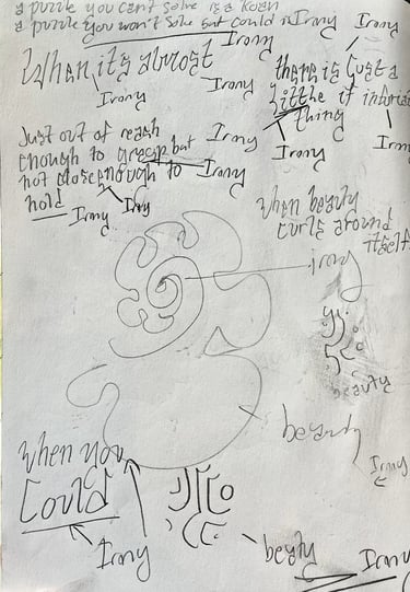 I would avoid thinking of irony as opposite to beauty. It is a product of beauty. It’s described as Beauty curling around itself, like how they describe the formation of life. Life and narrative both being inherently ironic because they desire to preserve themselves. Irony is the realm where badness is made, but Irony isn’t bad. Irony is also the realm of life, and drama and intrigue.