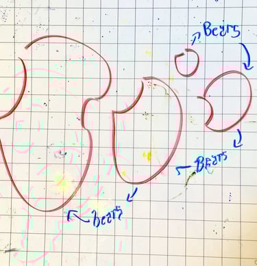 when talking about my work I use the word Bear in a different context. As a noun it means a beautiful ratio. It can refer to a space or an object in an artwork or in one's field of view, but that space is dependent on another. For instance, if one is looking at a landscape and the sky takes up most of the space, I may refer to the sky as the large bear, and the land as the small bear. It refers not to objects themselves but their relationships to each other. One object is in Bear when it complements another in a beautiful manner. I may say I am painting in bear if all of my marks are in bear of (aesthetically complementing) the last marks.